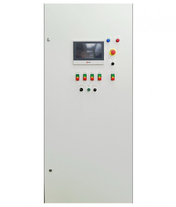 Для повышения удобства управления мы рекомендуем использовать кроме кнопочного управления сенсорный ЖКИ дисплей промышленного исполнения. Данное решения позволяет получить полный доступ к текущим процессам работающего комплекса. Сенсорная панель позволяет вывести данные о текущих значениях переменных, задавать настройки, выводить сообщения об авариях, получать доступ к журналу событий, строить графики и т.д.